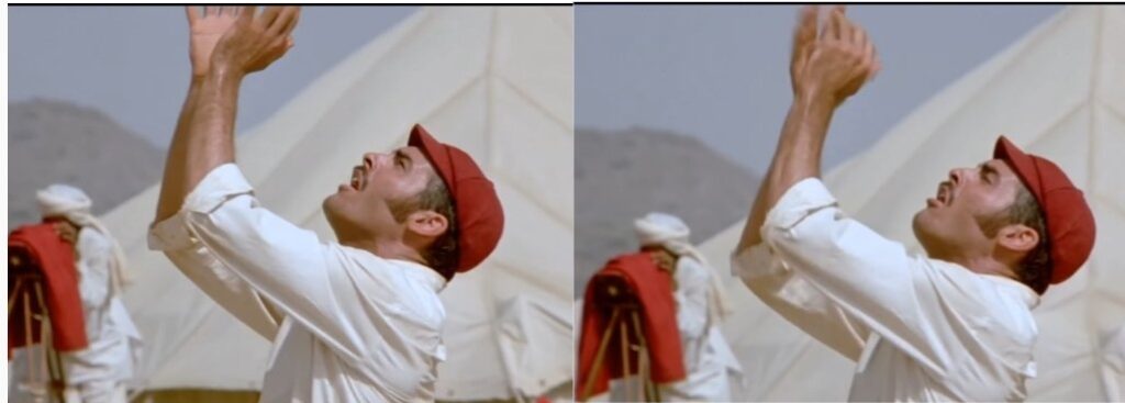 इस सीन के क्लोजप में जब कैप्टन रसेल गेंद कैच करता है तव वह सिर्फ कैच करने का अभिनय करता है और आप गौर से देखने पर पाएँगे कि उसके हाथ में कोई गेंद नही है। बल्कि इसी सीन के दूसरे शॉट में कैप्टन रसेल के हाथ में गेंद है।